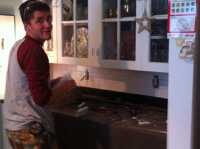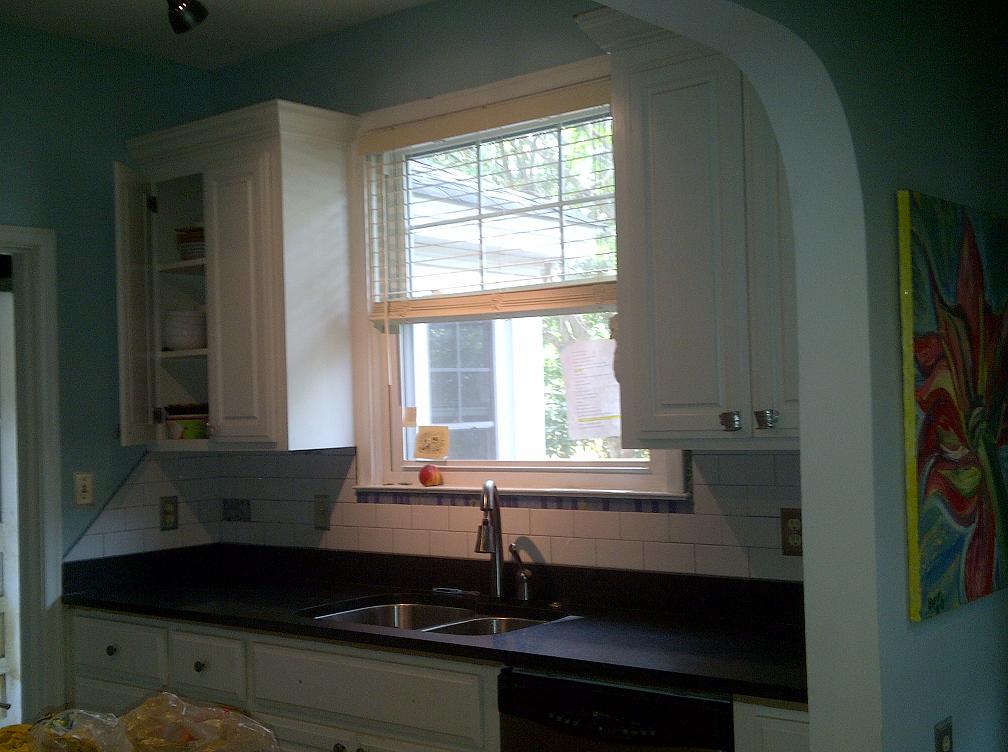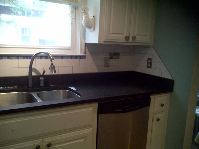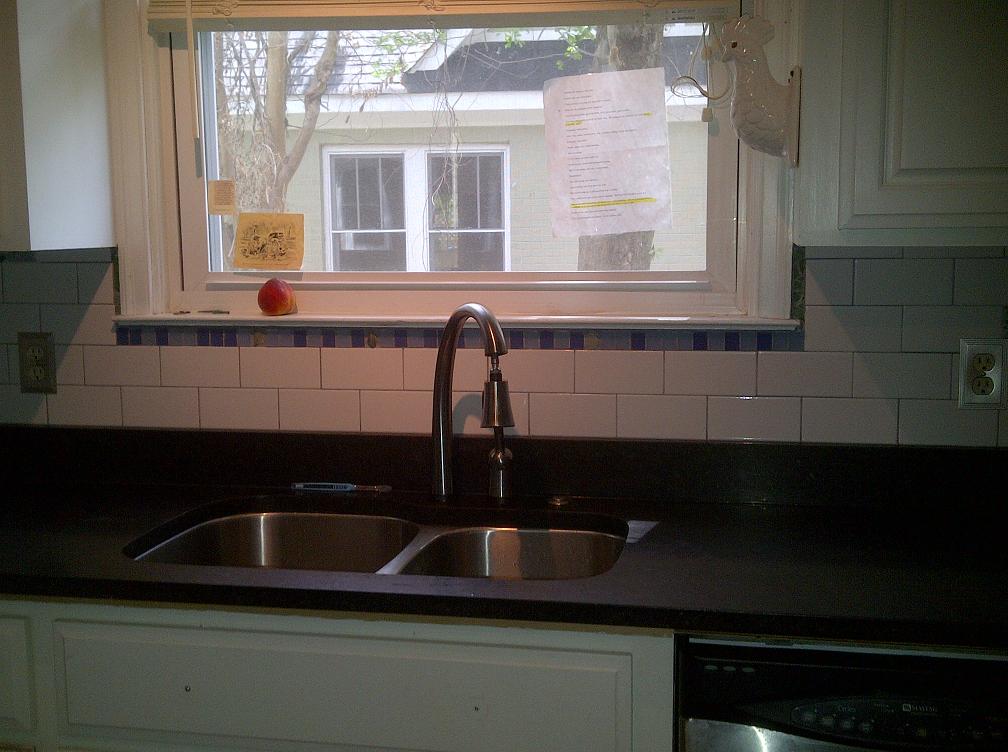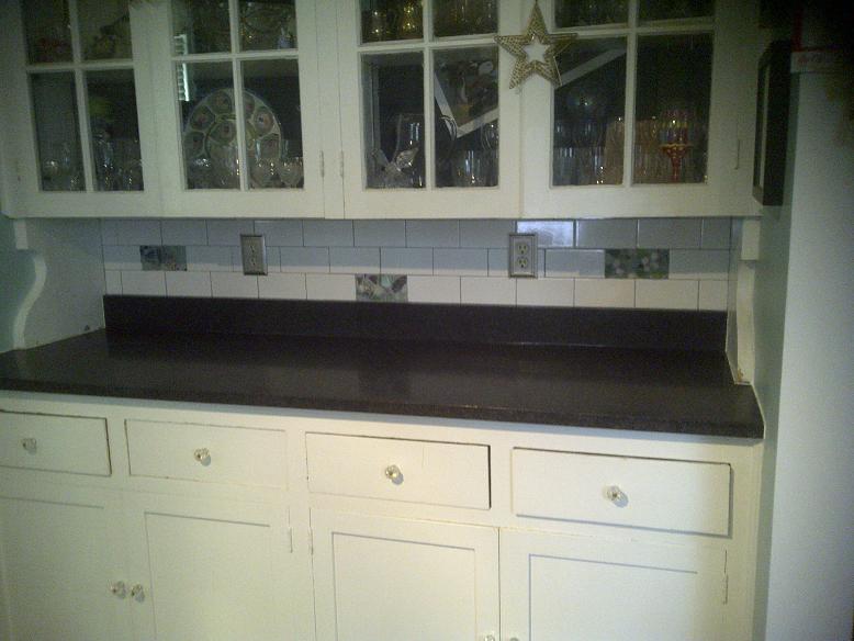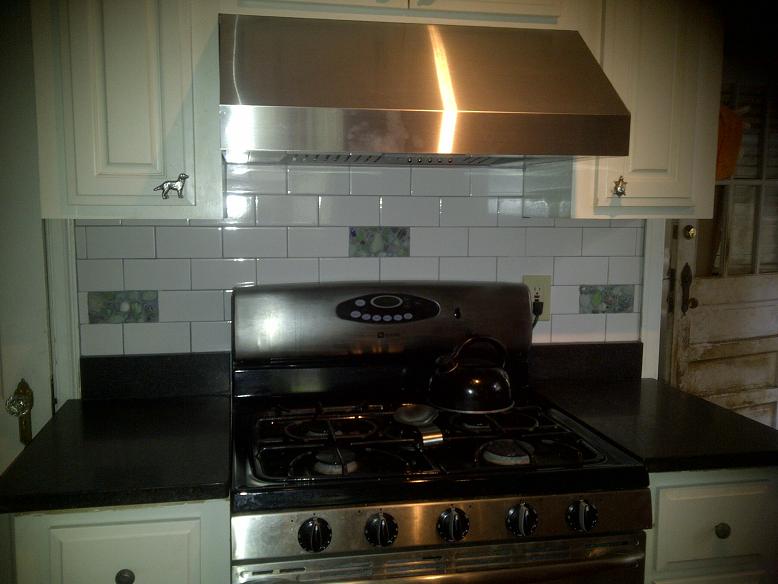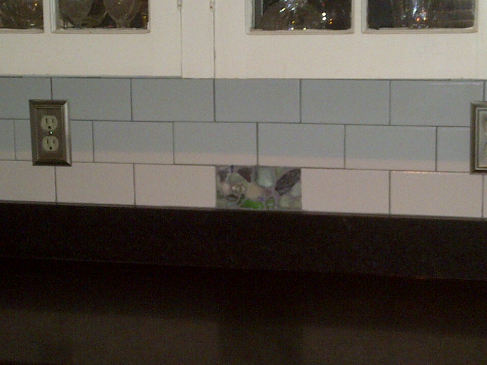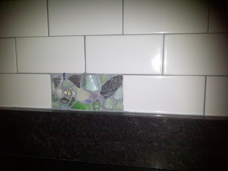 Subway Tile Backsplash w/ Custom Sea Glass Inserts |