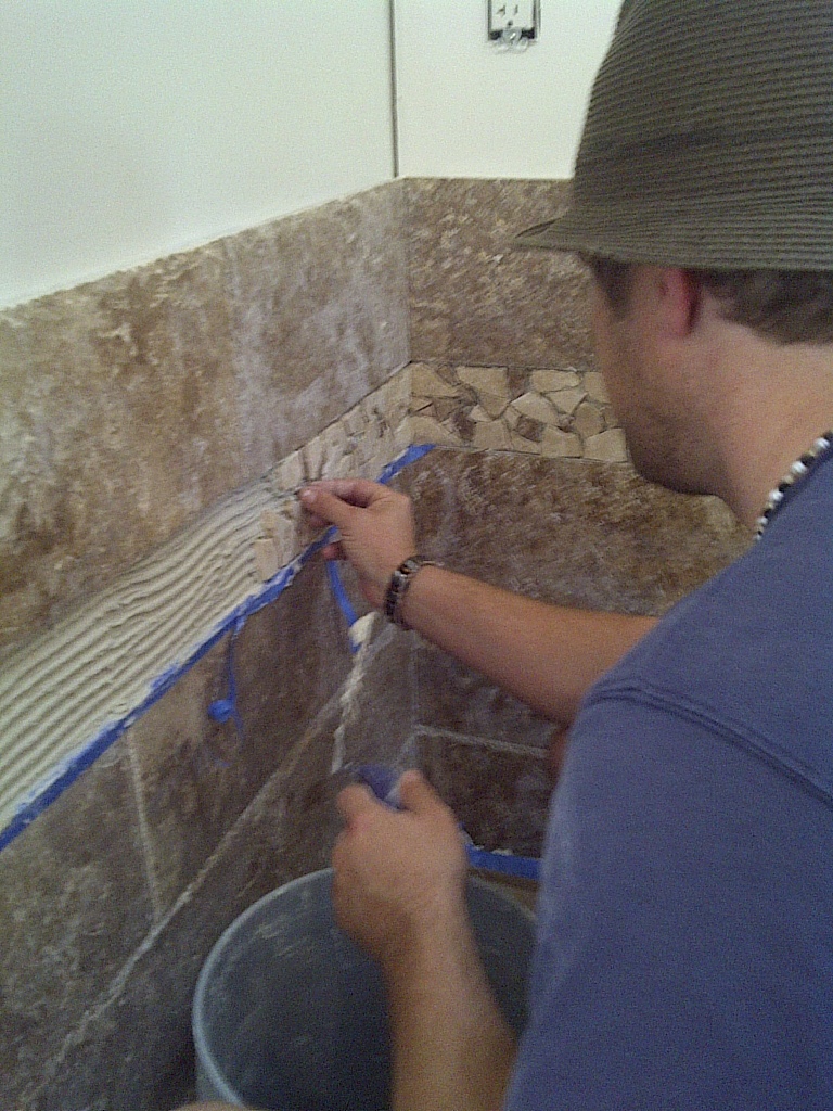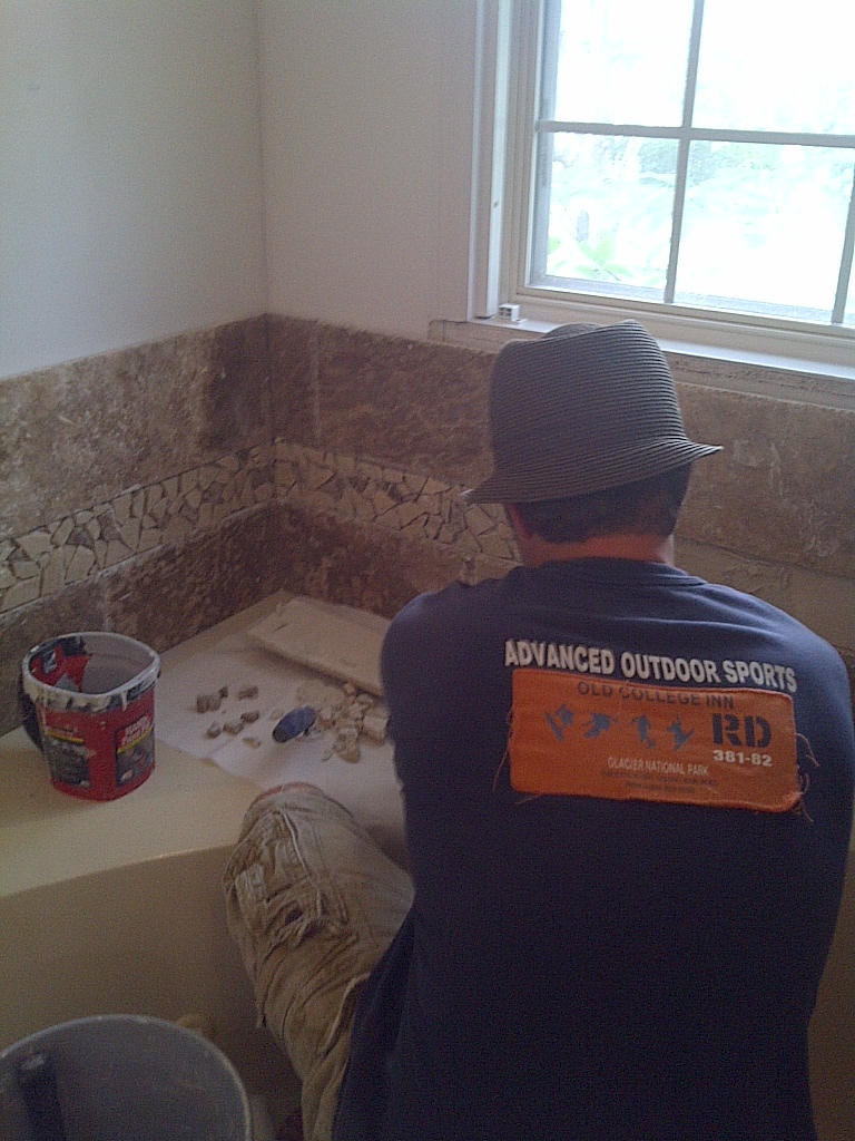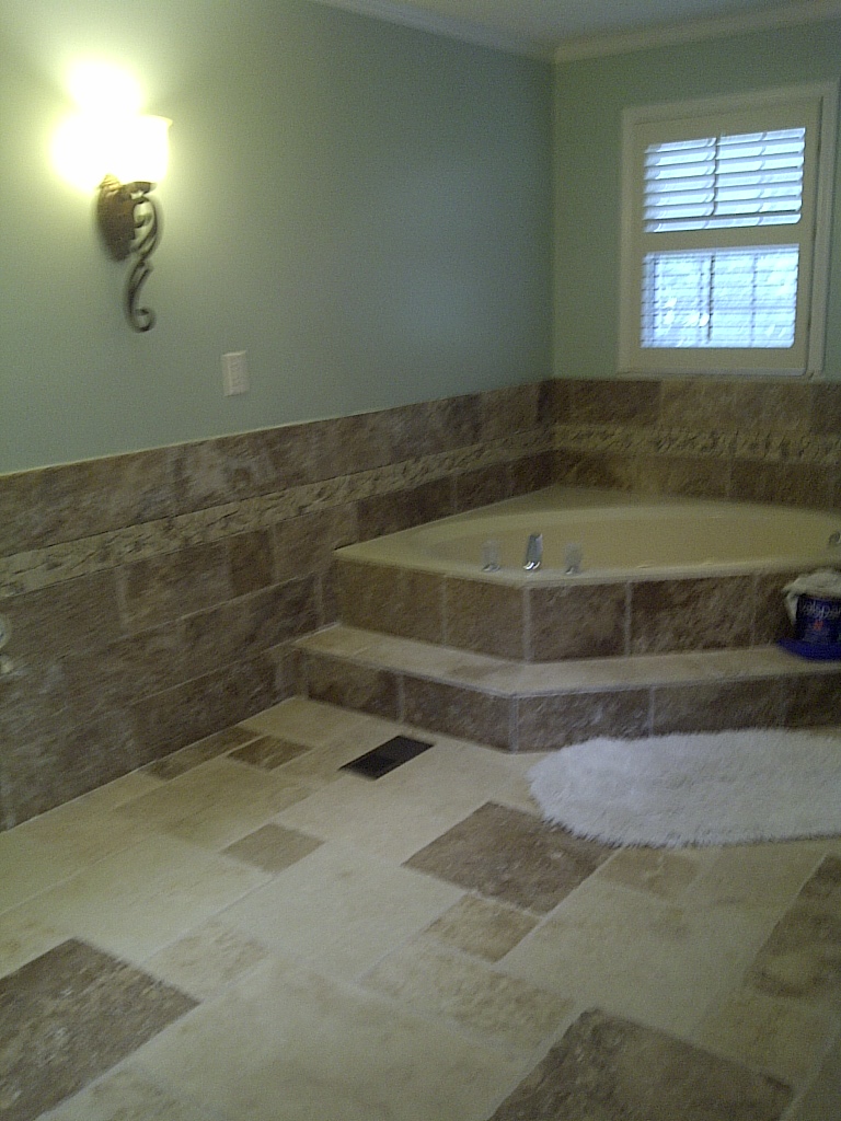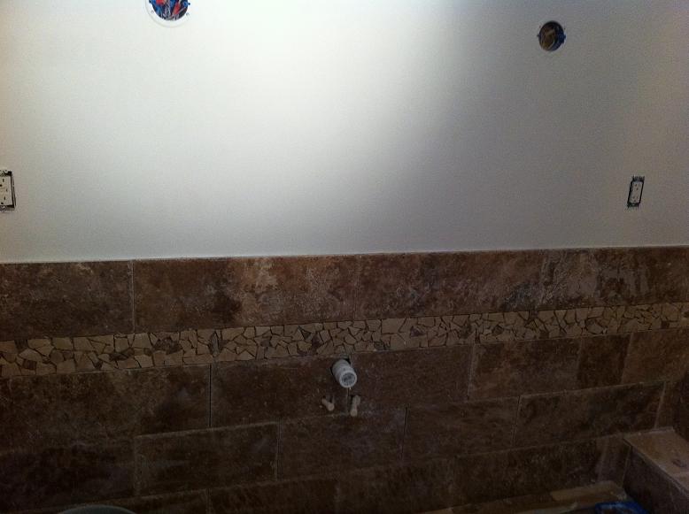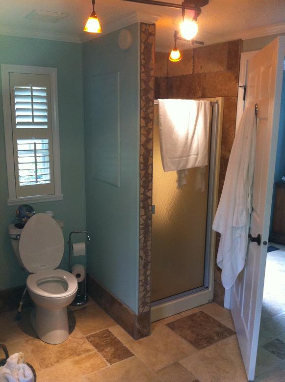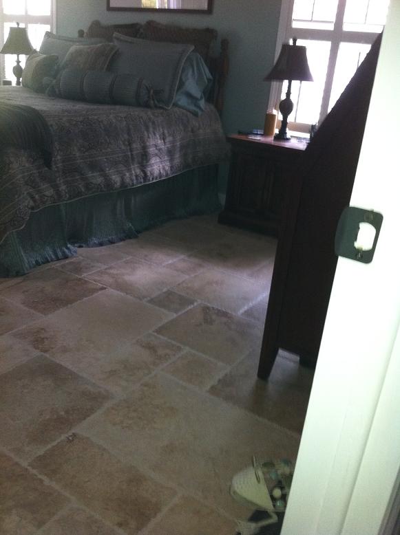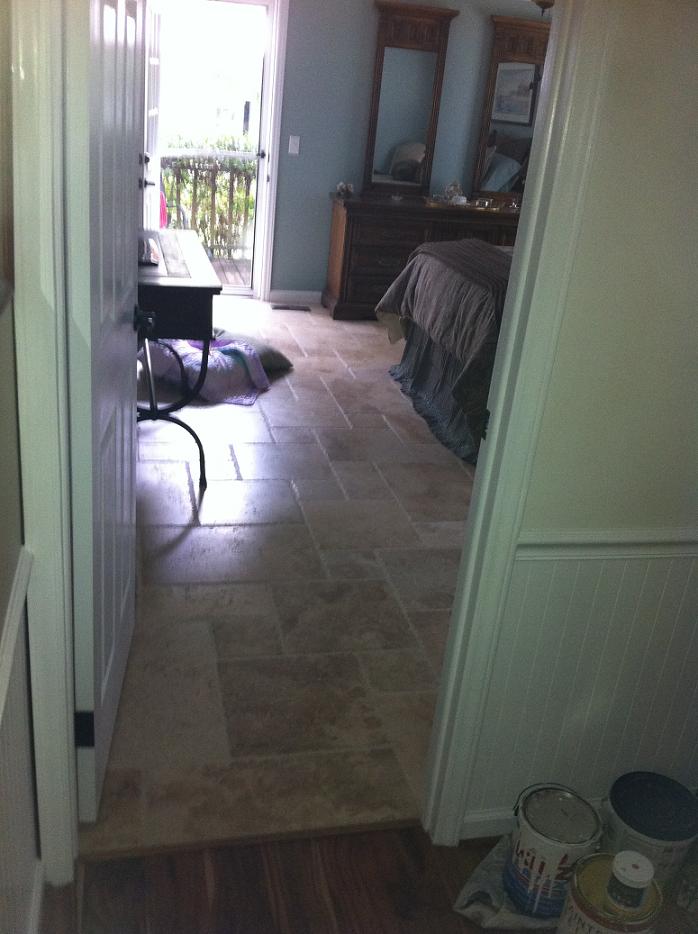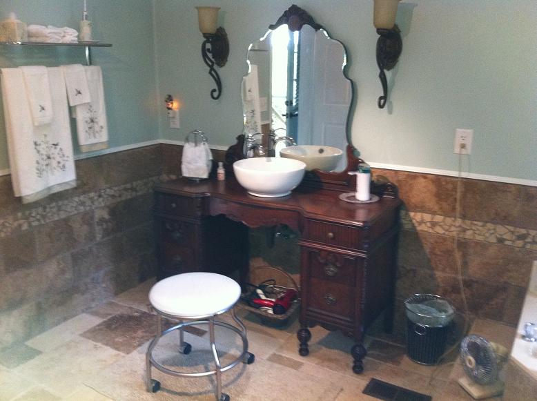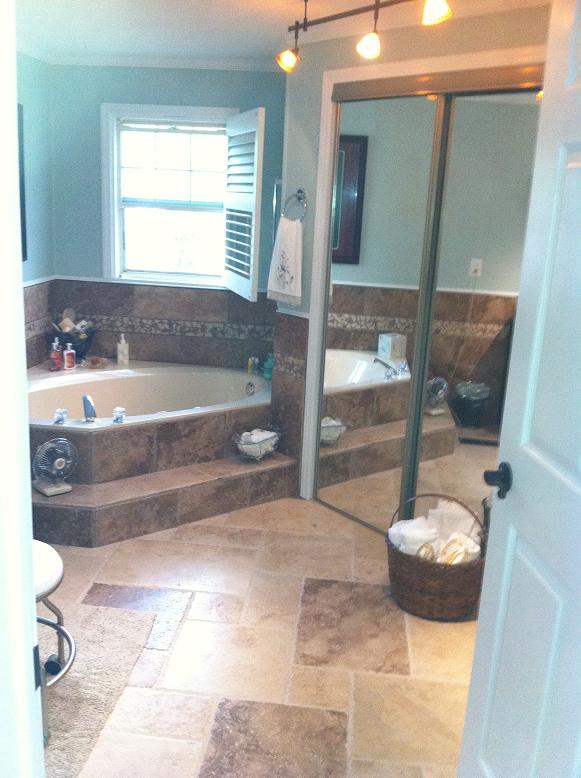 Travertine Master Suite w/ Mosaics & Antique Vanity |